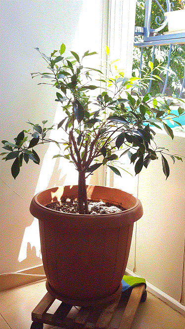 מגדלת פיקוס בעציץ גדול בתוך הבית (תמונה).