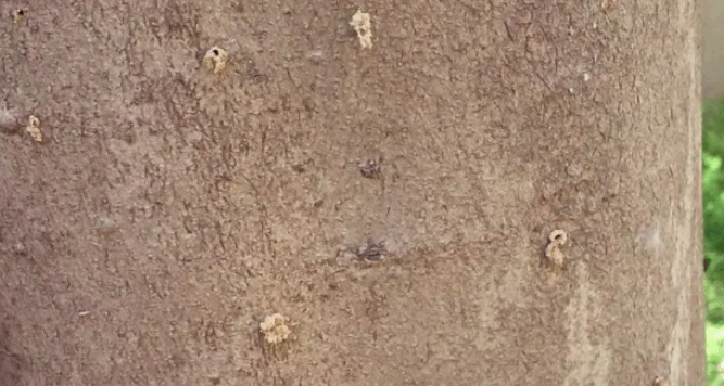 חורים קטנים וערמת נסורת/אבקה